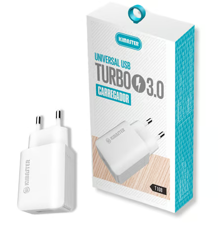 Carregador de Parede Universal Turbo USB 3.0 Kimaster Branco (T108)